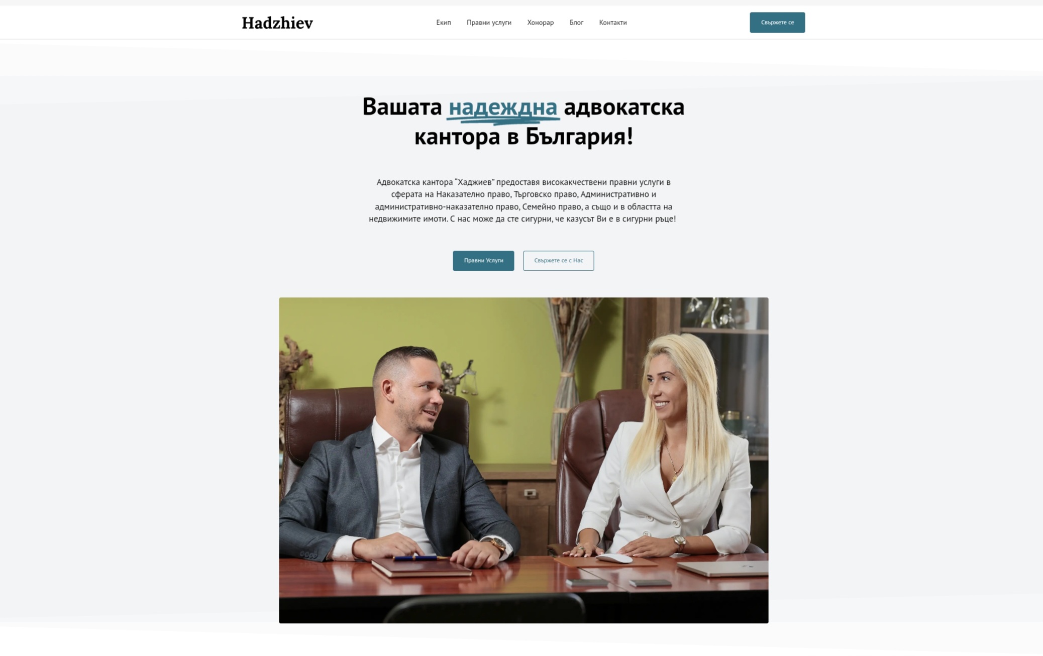 Създадохме модерен и интерактивен уебсайт за адвокатска кантора “Хаджиев”. Адв. Кристиан Хаджиев и кантората му са адокати с авторитет и голяма популярност сред социалните мрежи, с десетки хиляди последователи.